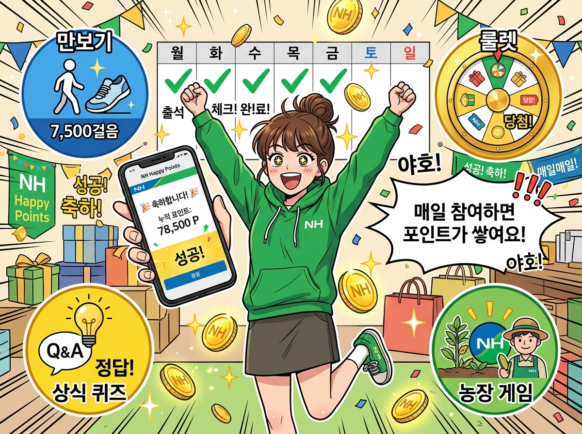 NH농협은행은 NH올원뱅크를 통해 '앱테크' 서비스를 꾸준히 확대하고 있더라고요. '포인트 쌓기' 메뉴에 들어가 보면 만보기, 디깅퀴즈, 올원룰렛, 올리네 농장 등 다양한 참여형 서비스들이 가득하다니까요.