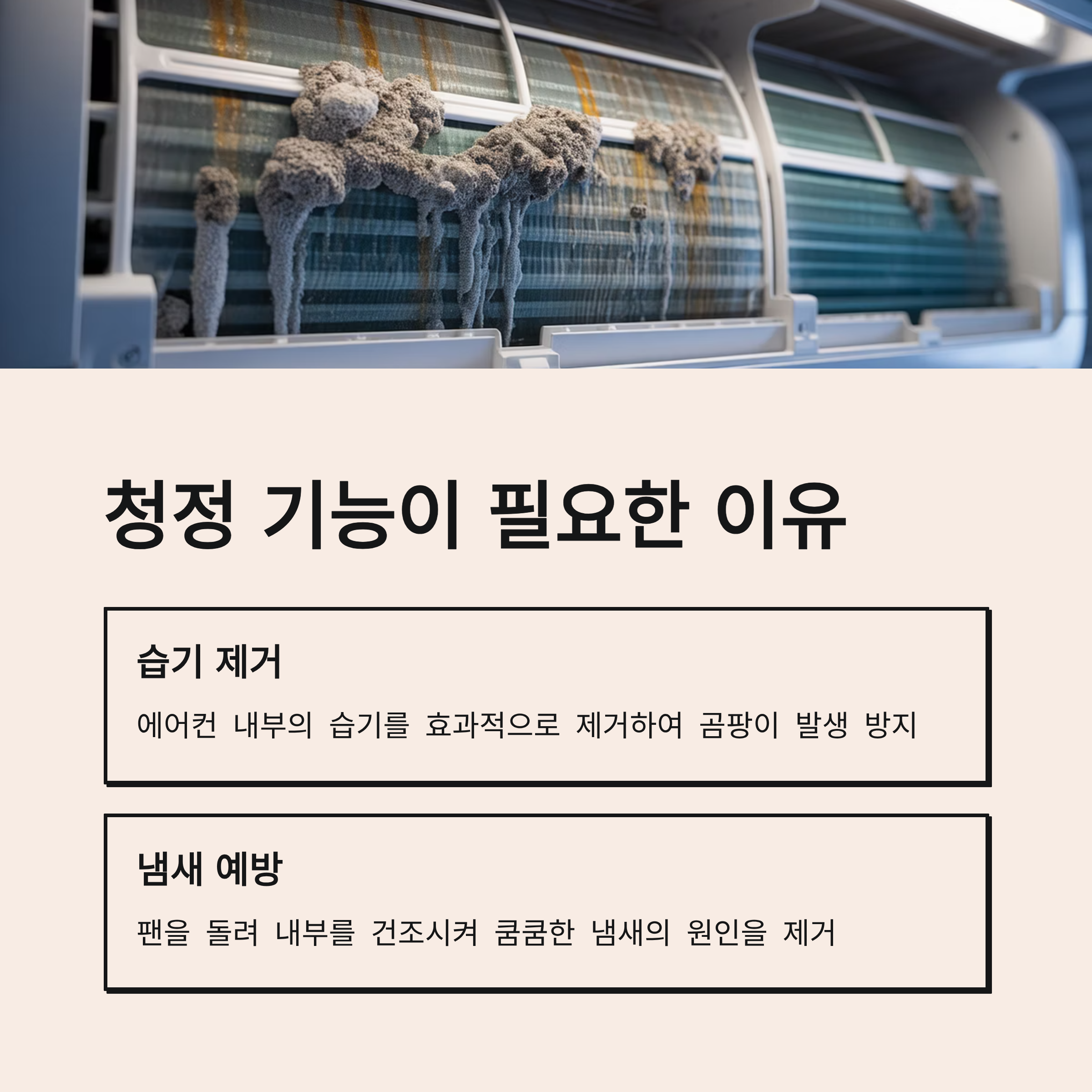 업체에서 냉방 후 청정 기능 사용을 권장한 것은 에어컨 내부의 습기를 제거하여 곰팡이와 냄새를 예방하는 아주 올바른 방법입니다. 무풍 기능은 냉기를 유지하지만, 내부에 습기가 맺히기 쉬워 곰팡이와 냄새의 원인이 될 수 있습니다. 청정 기능은 팬을 돌려 내부를 건조시키는 역할을 하므로 쾌적한 에어컨 사용에 필수적입니다.