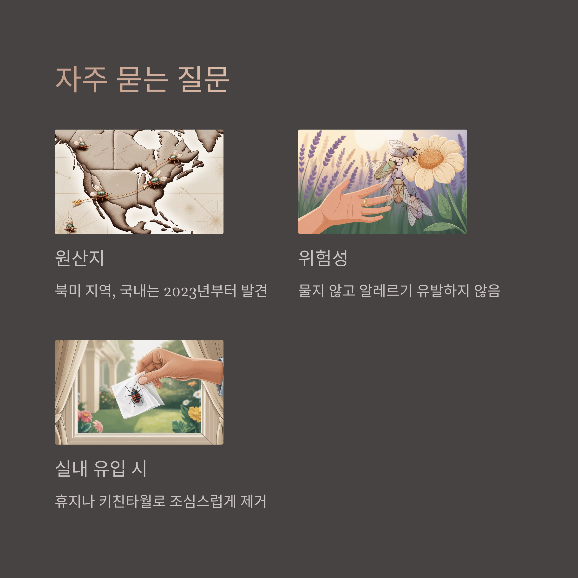 A1. 북미 지역이 원산지이며, 국내에서는 2023년경부터 발견되기 시작해 2024년 본격적으로 수도권에 출몰했습니다.