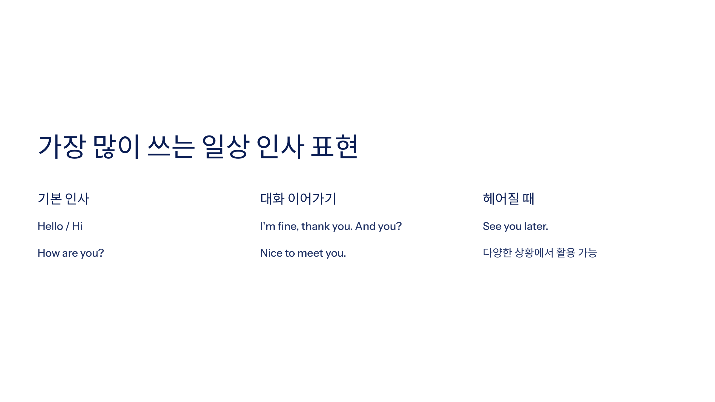2. 가장 많이 쓰는 일상 인사 표현