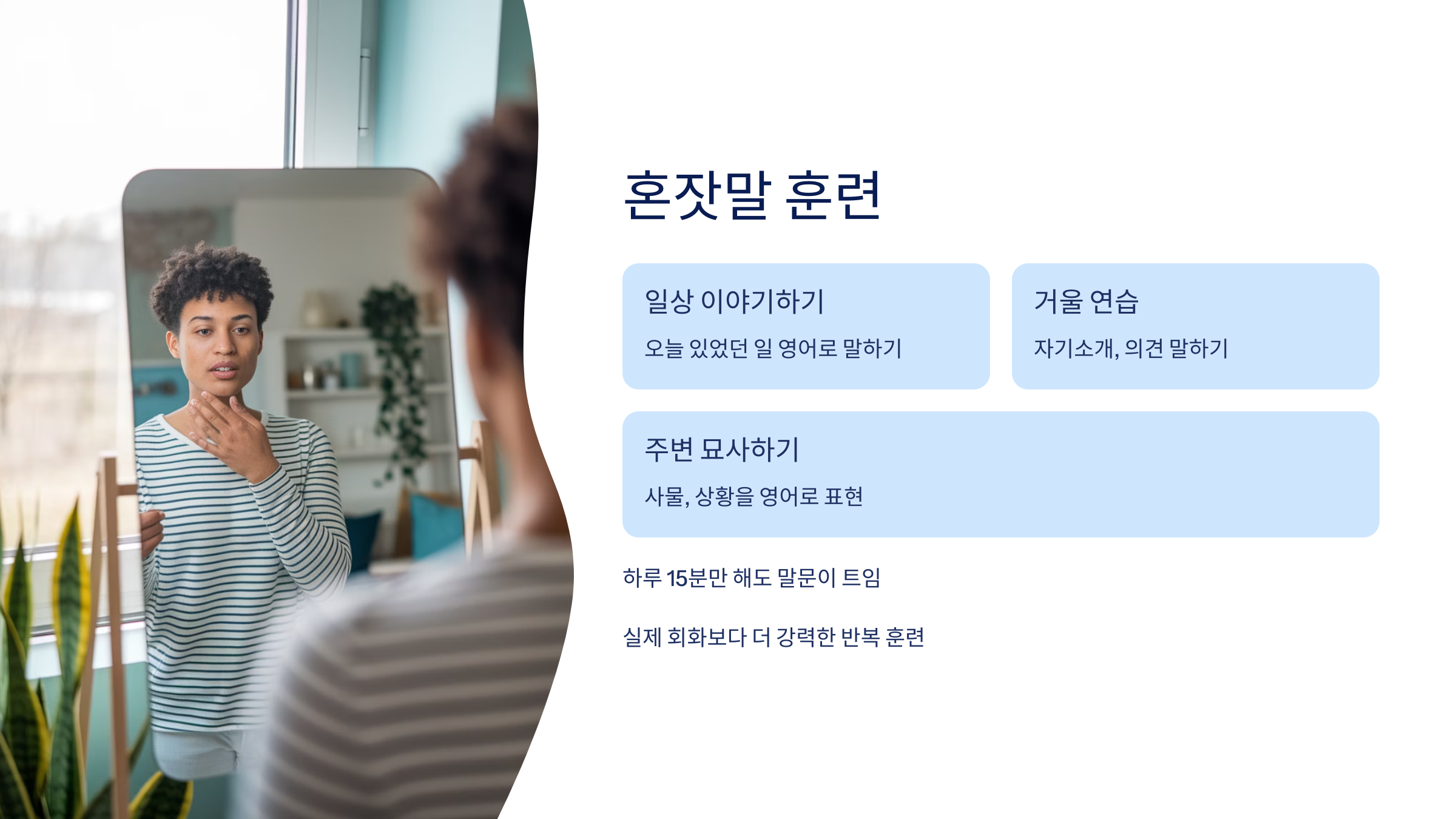 이런 말하기 연습은 실제 회화보다 더 강력한 반복 훈련입니다.