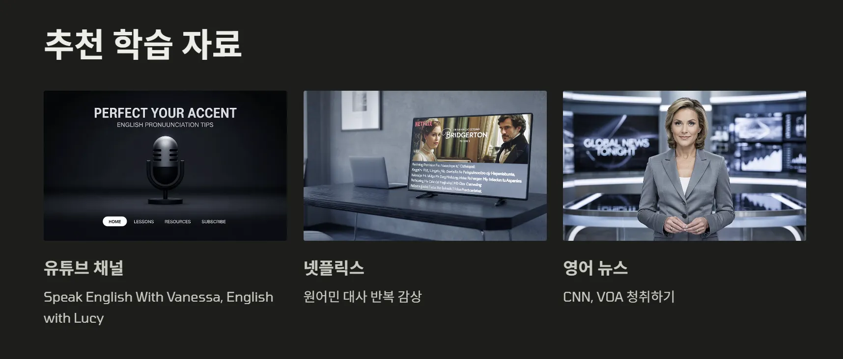 - 영어 뉴스 듣기(예: CNN, VOA)