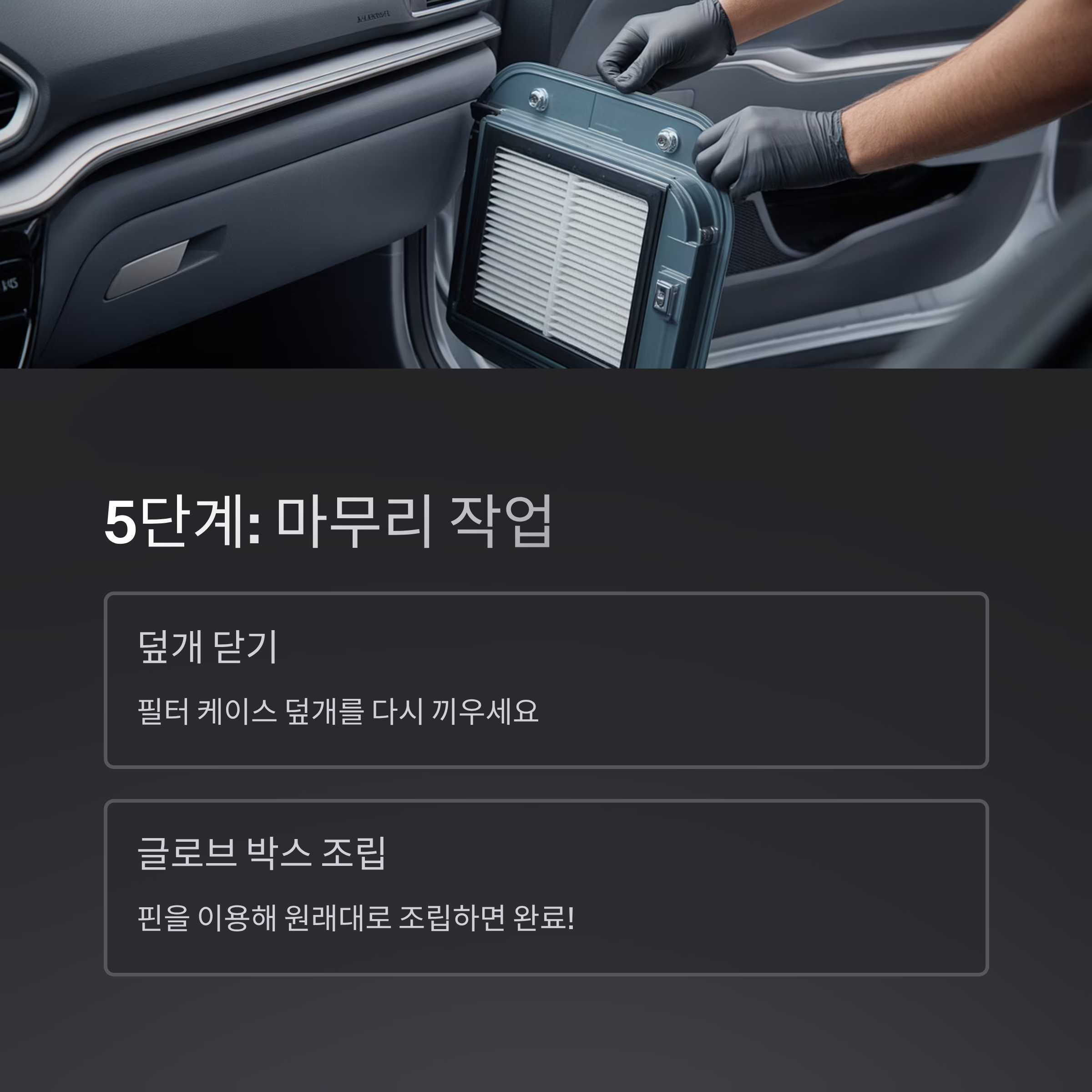 5단계: 필터 덮개 닫고 글로브 박스 조립