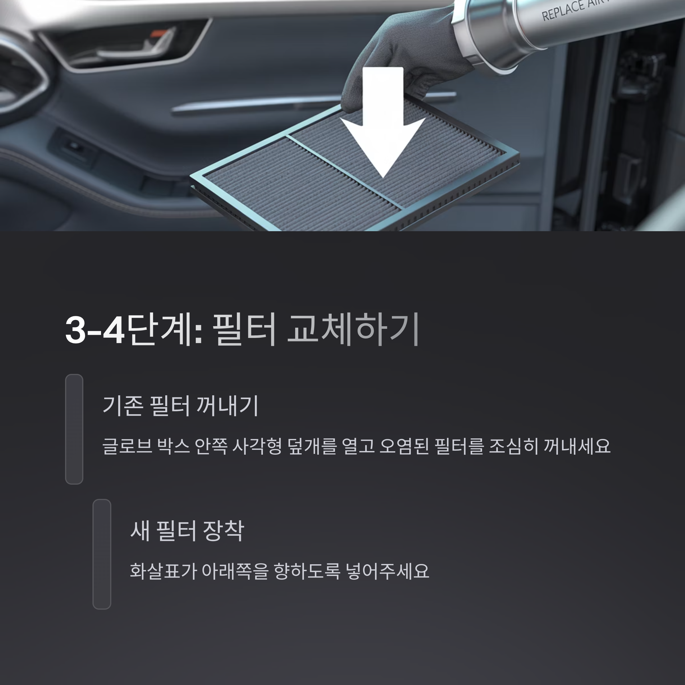 4단계: 새 필터 방향 확인 후 장착