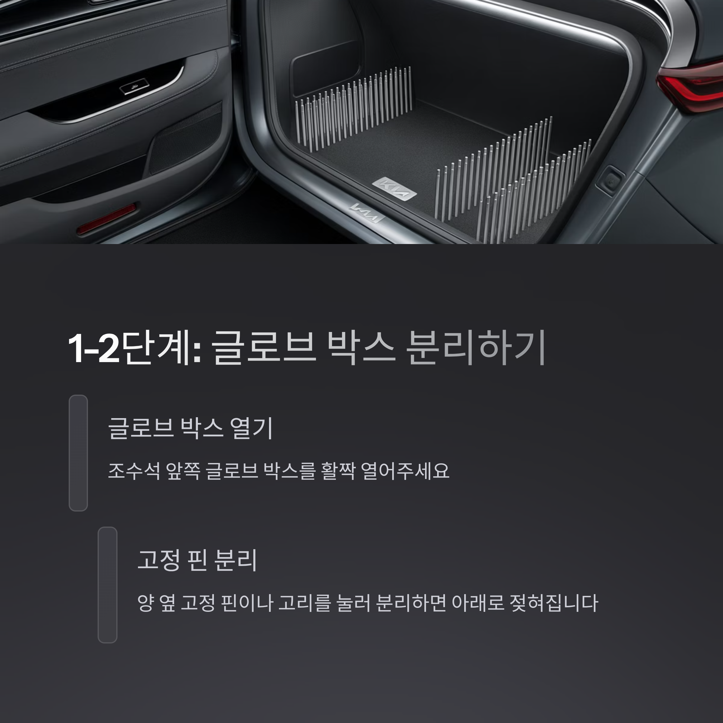 글로브 박스 양 옆을 보면 고정 핀이나 고리가 있어요.